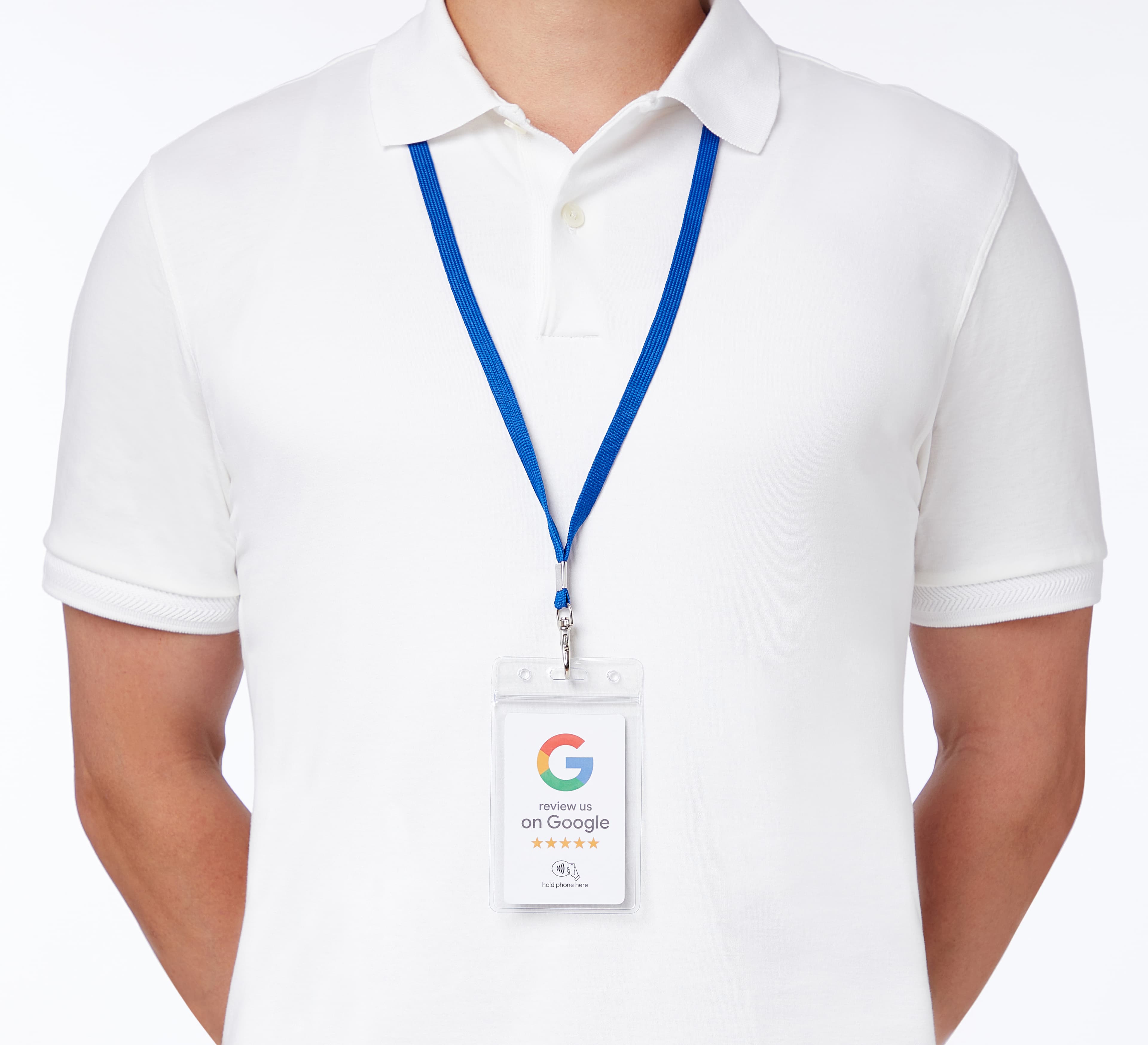 Each badge is embedded with a unique QR code and NFC chip so all of your employees have 2 options to collect reviews.