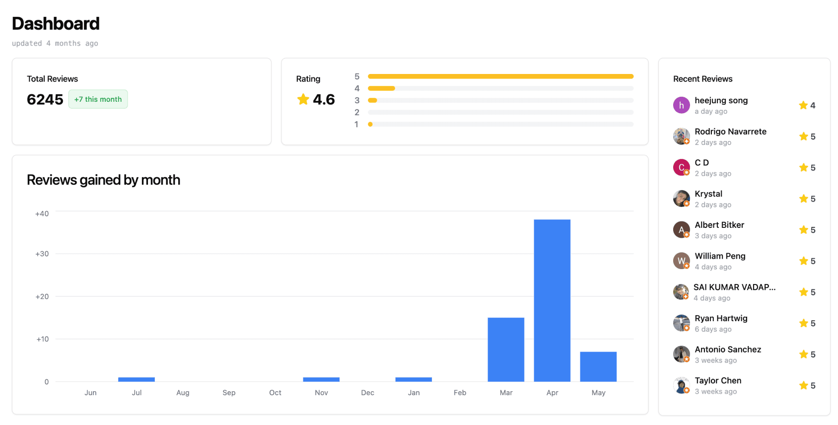 Compare your review growth month-to-month so you can assess you or your team's performance.